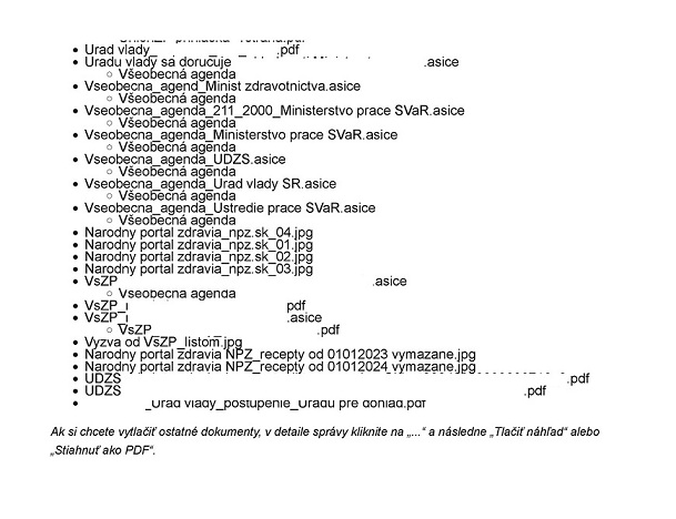 Počas 2024 P. eRecept v lekárni nevybrala, pretože VšZP zabezpečila stav (dodnes), že sú vymazané všetky pohospitalizačné eRecepty, lekári a lekárne P. nevidia v systéme, vytvorili úmrtie. VšZP vymazala všetky recepty z nemocnice a P. zo zdravotníckeho informačného systému.